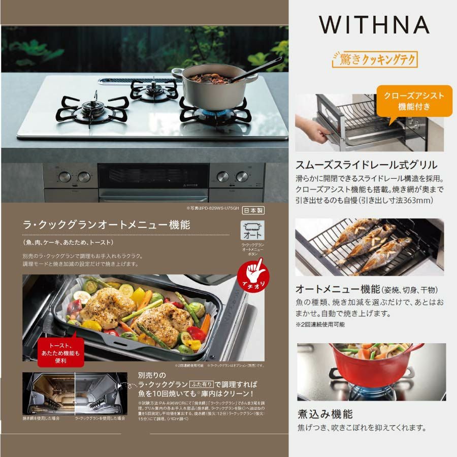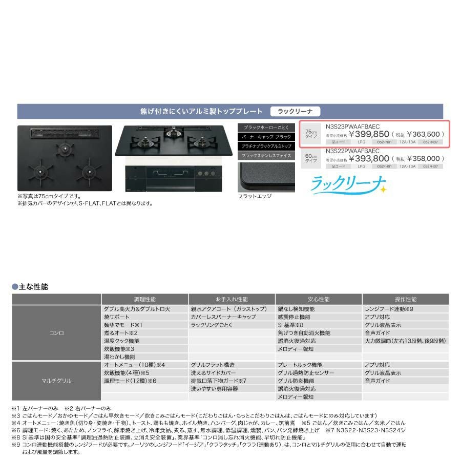 他の画像を見る 豊富な調理機能で、食卓を華やかに ノーリツ ビルトインコンロ N3S23PWAAFBAEC PROGRE プログレ プラチナブラック 75cm幅 ラックリーナ 定価 ¥ 399,850 のところ 当店特別価格 ¥ 203,830 税込 カートに入れる