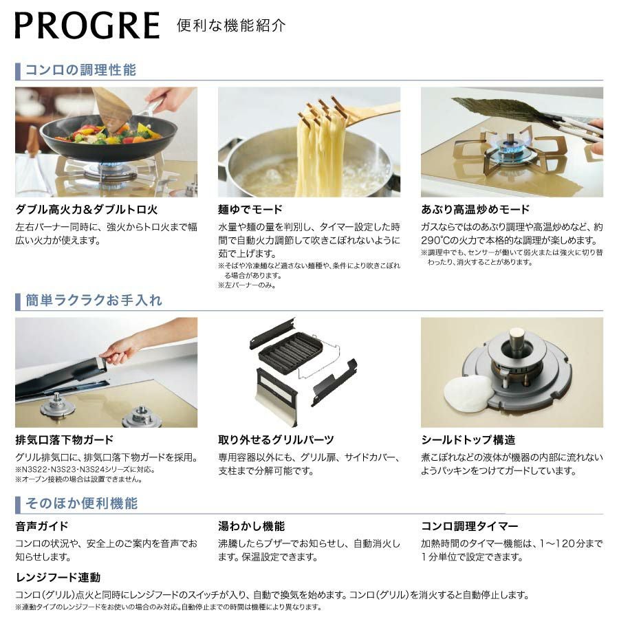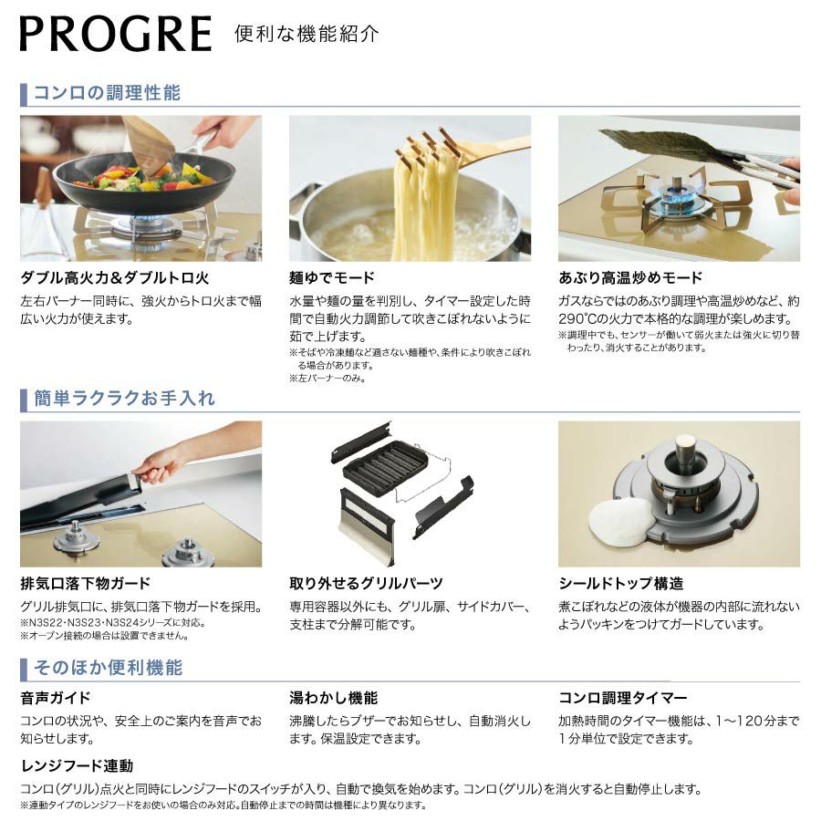 他の画像を見る 豊富な調理機能で、食卓を華やかに ノーリツ ビルトインコンロ N3S22PWASFSTESC PROGRE プログレ シャンパンゴールド 60cm幅 FLAT 定価 ¥ 385,220 のところ 当店特別価格 ¥ 196,460 税込 カートに入れる