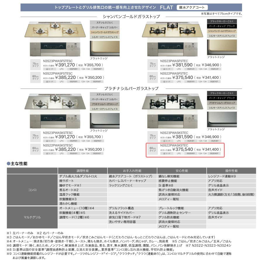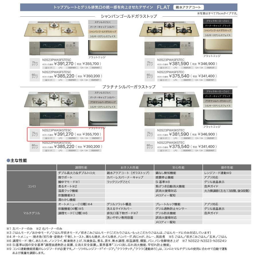 他の画像を見る 豊富な調理機能で、食卓を華やかに ノーリツ ビルトインコンロ N3S23PWASKSTEC PROGRE プログレ プラチナシルバー 75cm幅 FLAT 定価 ¥ 381,590 のところ 当店特別価格 ¥ 194,590 税込 カートに入れる