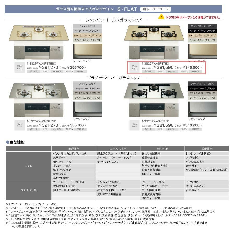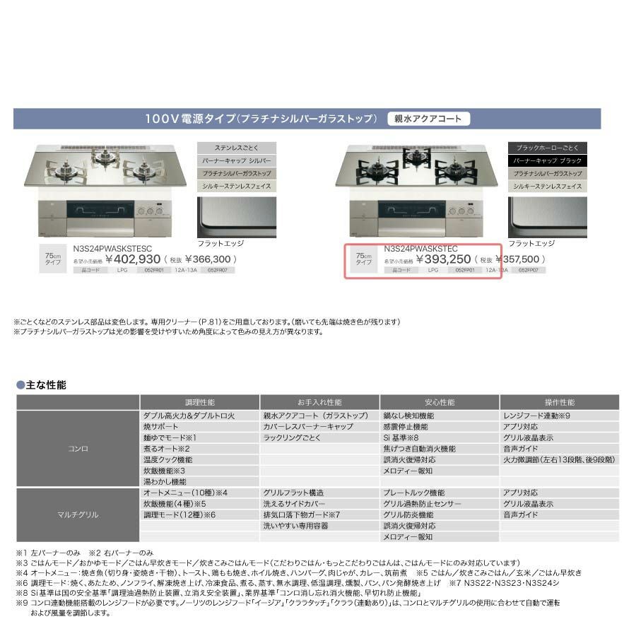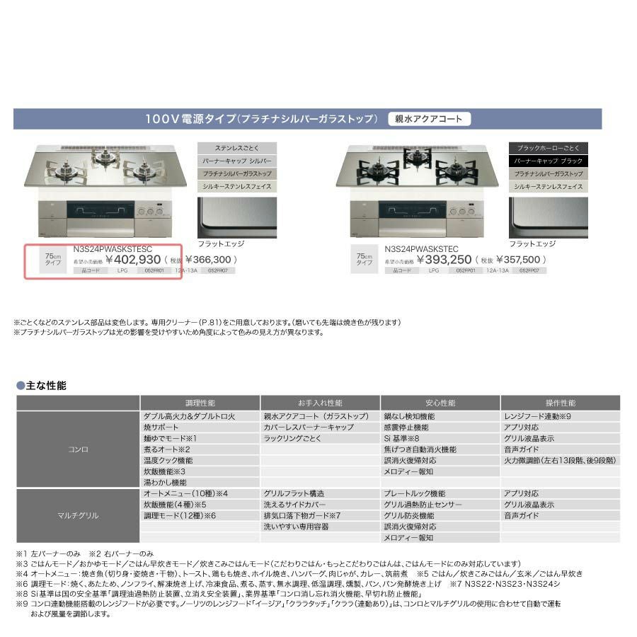 他の画像を見る 豊富な調理機能で、食卓を華やかに ノーリツ ビルトインコンロ N3S24PWASKSTEC PROGRE プログレ プラチナシルバー 75cm幅 100V電源タイプ 定価 ¥ 393,250 のところ 当店特別価格 ¥ 184,800 税込 カートに入れる