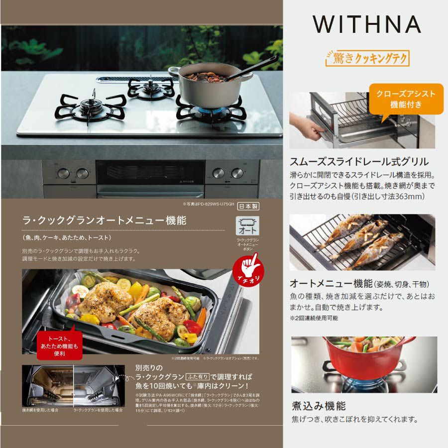 他の画像を見る 豊富な調理機能で、食卓を華やかに ノーリツ ビルトインコンロ N3S23PWASFSTEC PROGRE プログレ シャンパンゴールド 75cm幅 FLAT 定価 ¥ 381,590 のところ 当店特別価格 ¥ 194,590 税込 カートに入れる