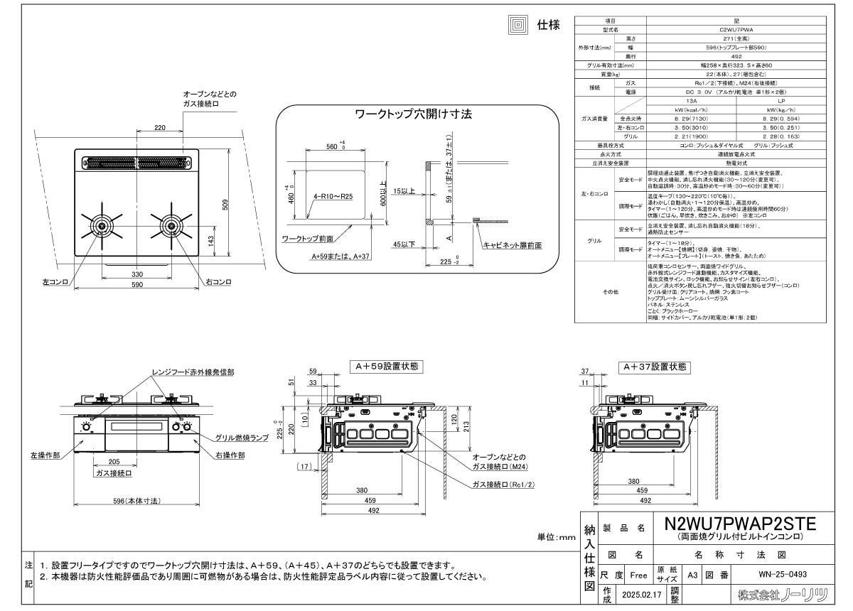 豊富な調理機能で、食卓を華やかに ノーリツ ビルトインコンロ N3S22PWASKSTEC PROGRE プログレ プラチナシルバー 60cm幅 FLAT