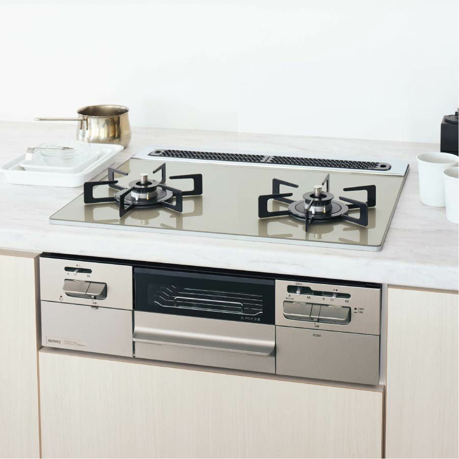 豊富な調理機能で、食卓を華やかに ノーリツ ビルトインコンロ N3S22PWASFSTESC PROGRE プログレ シャンパンゴールド 60cm幅 FLAT