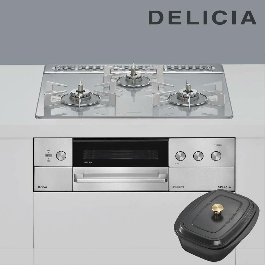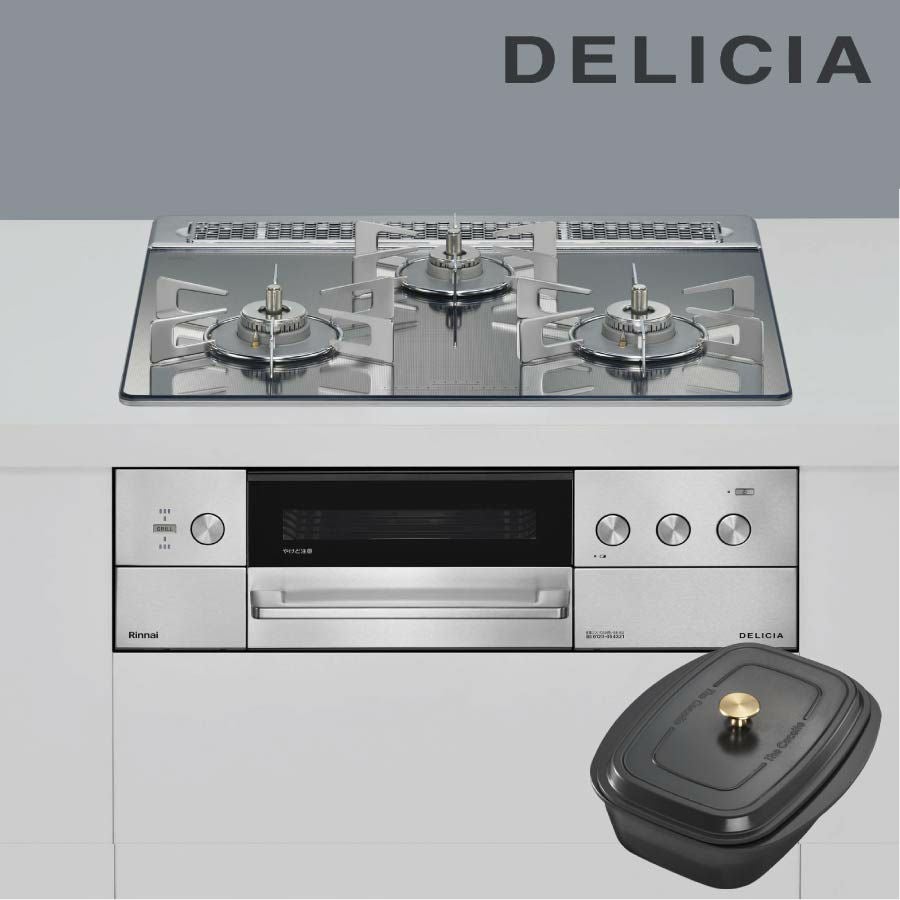 コンロを美しく、料理をもっとおいしく リンナイ ビルトインコンロ RHS31W39M13RCSTW DELICIA デリシア プラチナミラー 60cm幅 3V乾電池タイプ 操作部シンプル
