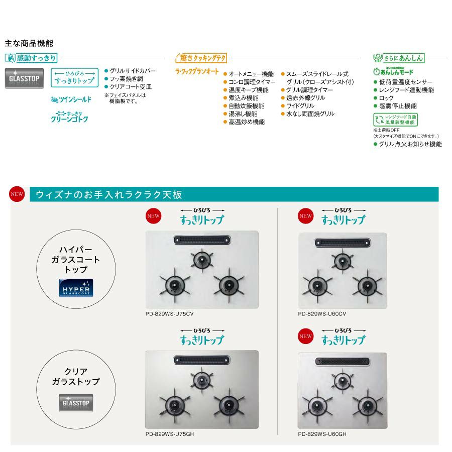 ●お手入れ性能・・・ひろびろ×すっきりトップ/ツインシールド構造(両コンロ強火力)/らくグリル