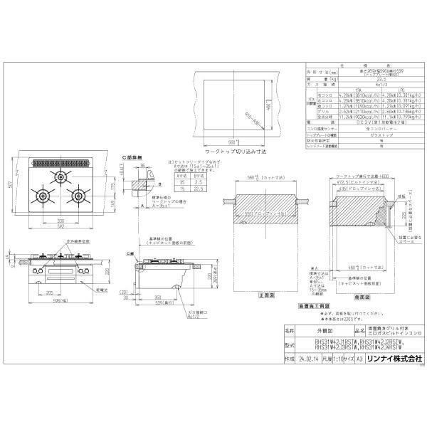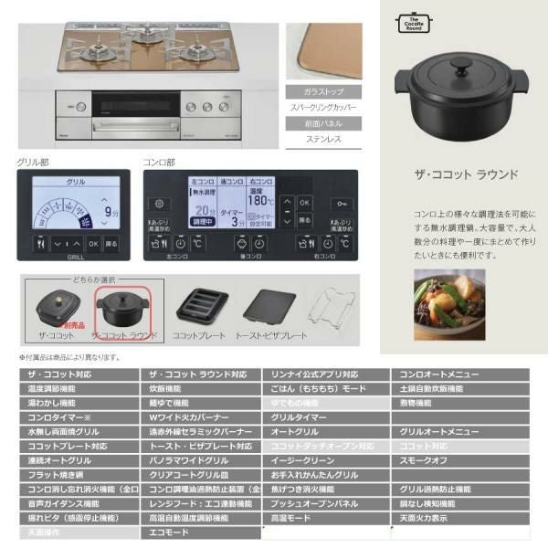 他の画像を見る リンナイ ビルトインコンロ RHS31W42J2RSTW 60cm幅 3口ガスコンロ 都市ガス プロパン Lisse リッセ 定価 ¥ 270,600 のところ 当店特別価格 ¥ 129,447 税込 詳細を見る