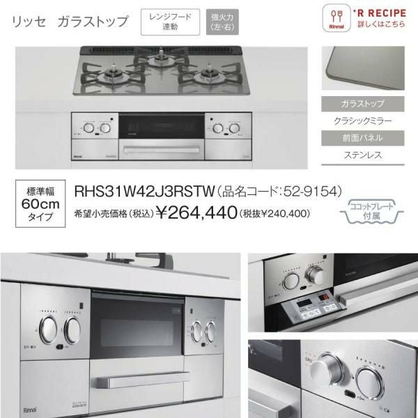 他の画像を見る リンナイ ビルトインコンロ RHS31W42J1RSTW 60cm幅 3口ガスコンロ 都市ガス プロパン Lisse リッセ 定価 ¥ 270,600 のところ 当店特別価格 ¥ 129,447 税込 詳細を見る