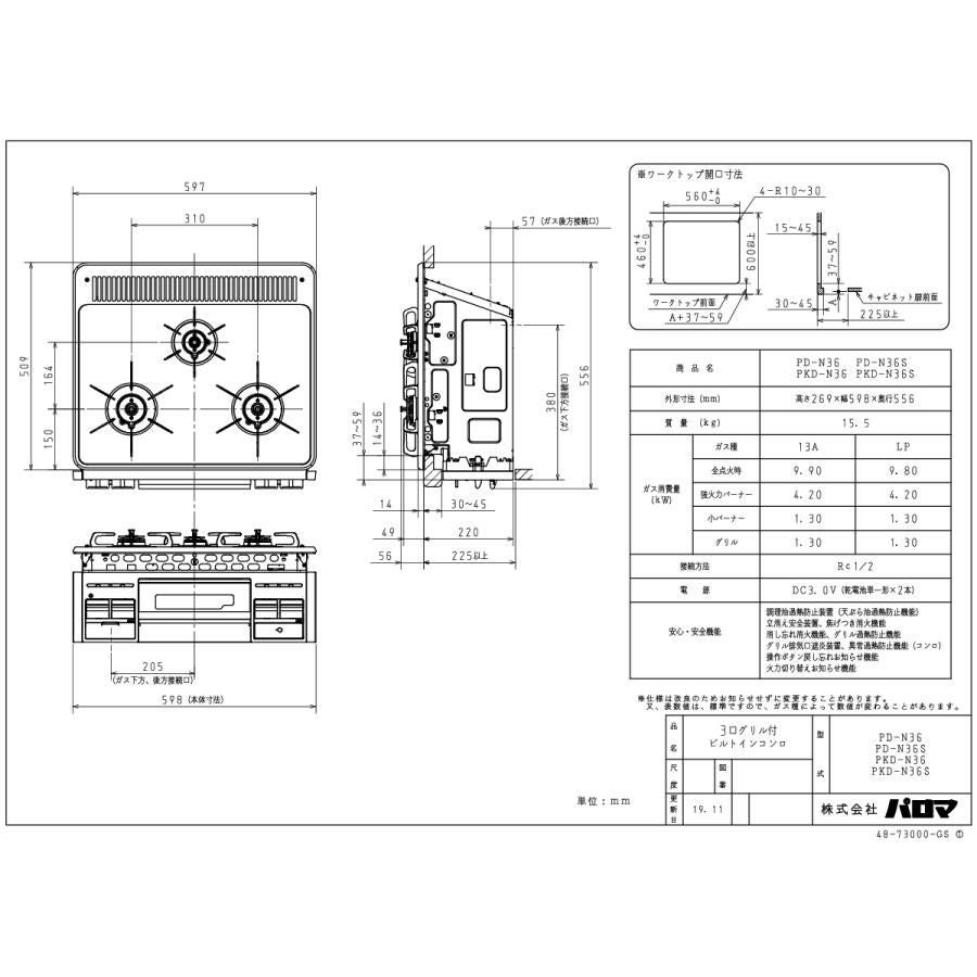 他の画像を見る パロマ ビルトインコンロ PD-N36S 60cm幅 ホーロートップ スタンダード 水なし片面焼 左右強火力 3口ガスコンロ 定価 ¥ 96,030 のところ 当店特別価格 ¥ 30,800 税込 在庫切れ 詳細を見る