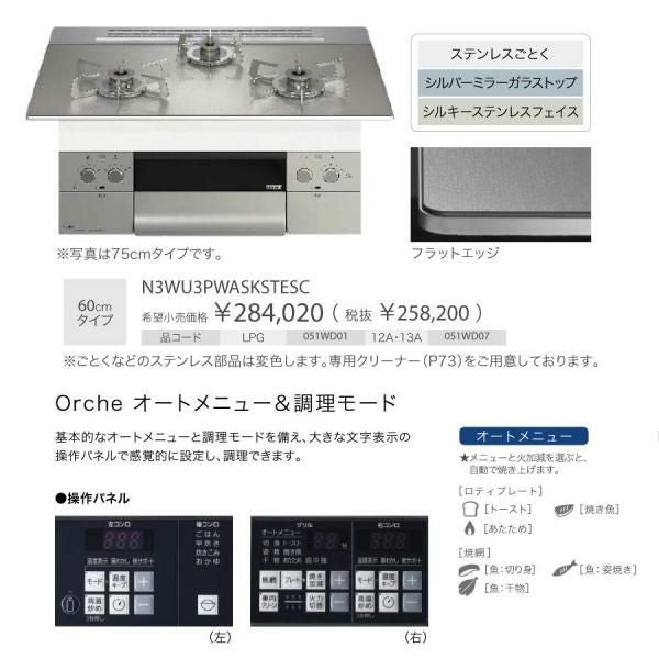他の画像を見る ノーリツ ビルトインコンロ N3WU3PWASKSTEC Orche オルシェ 60cm幅 ガラストップ:シルバーミラー 3口ガスコンロ *ロティプレート同梱 定価 ¥ 274,340 のところ 当店特別価格 ¥ 109,000 税込 詳細を見る