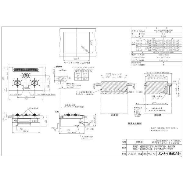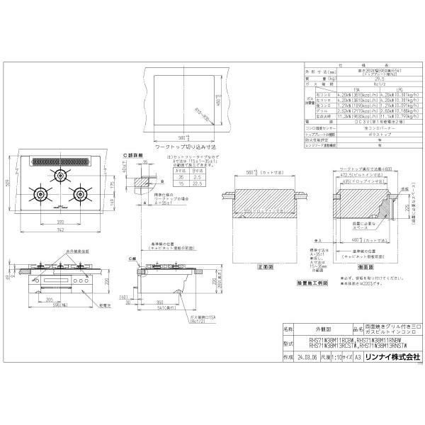 他の画像を見る リンナイ ビルトインコンロ RHS71W38M13VNSTW 75cm幅 AC100Vタイプ 3口ガスコンロ 都市ガス プロパン DELICIA デリシア 定価 ¥ 471,900 のところ 当店特別価格 ¥ 245,325 税込 詳細を見る