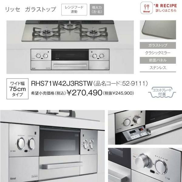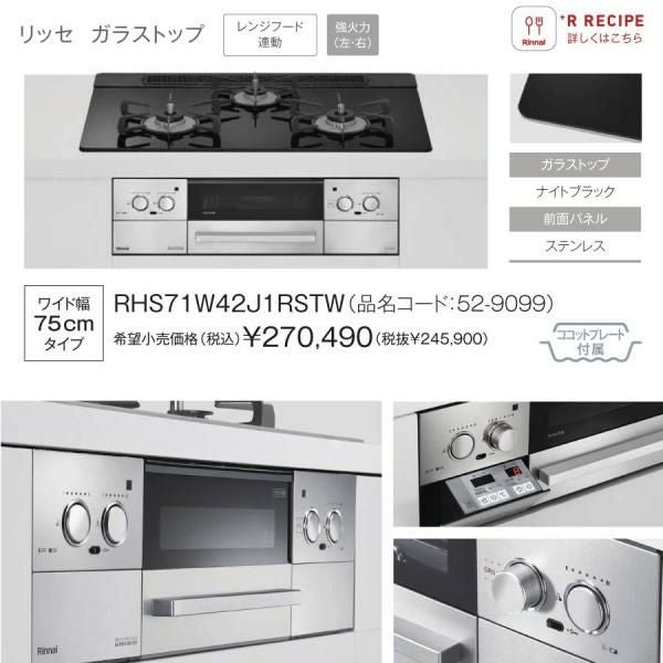 他の画像を見る リンナイ ビルトインコンロ RHS71W42J1RSTW 75cm幅 3口ガスコンロ 都市ガス プロパン Lisse リッセ 定価 ¥ 276,100 のところ 当店特別価格 ¥ 132,492 税込 詳細を見る