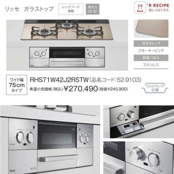他の画像を見る リンナイ ビルトインコンロ RHS71W42J2RSTW 75cm幅 3口ガスコンロ 都市ガス プロパン Lisse リッセ 定価 ¥ 276,100 のところ 当店特別価格 ¥ 132,492 税込 詳細を見る