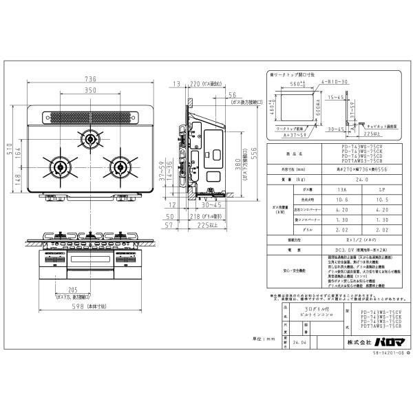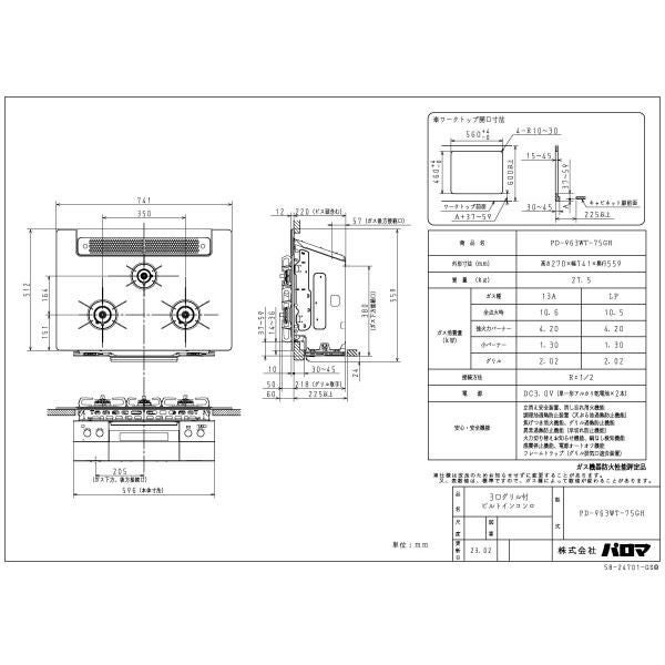 他の画像を見る パロマ ビルトインコンロ PD-743WS-75GH 75cm幅 BRilliOa ブリリオアルファ 定価 ¥ 210,100 のところ 当店特別価格 ¥ 74,900 税込 詳細を見る