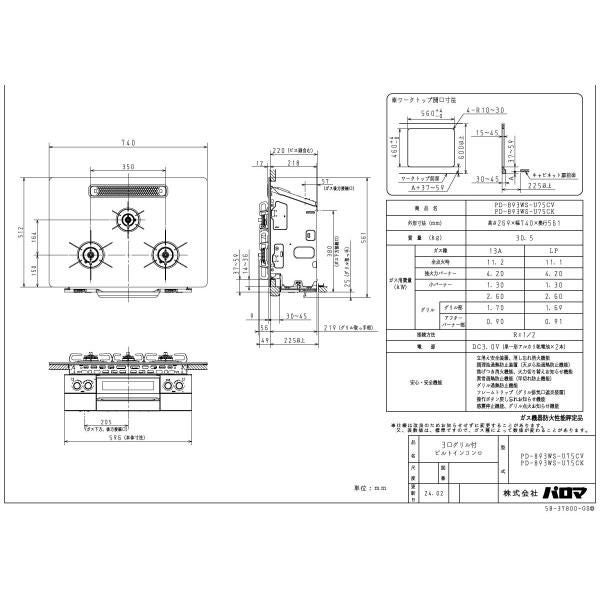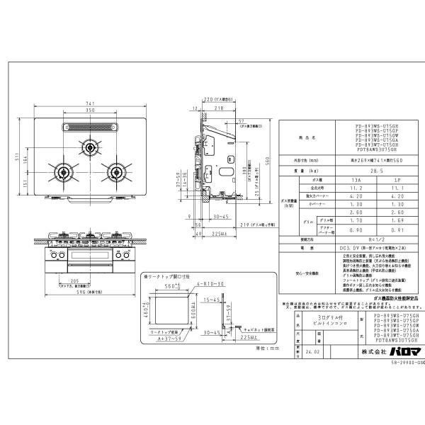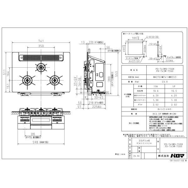 他の画像を見る パロマ ビルトインコンロ PD-893WS-U75CK FACEIS GRAND フェイシス グランド 75cm幅 3口ガスコンロ 定価 ¥ 280,500 のところ 当店特別価格 ¥ 110,980 税込 詳細を見る