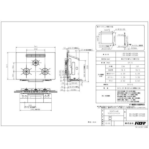 他の画像を見る パロマ ビルトインコンロ PD-963WT-U75GH 水なし両面焼グリル 75cm幅 3口ガスコンロ CREA クレア 定価 ¥ 372,570 のところ 当店特別価格 ¥ 200,860 税込 詳細を見る