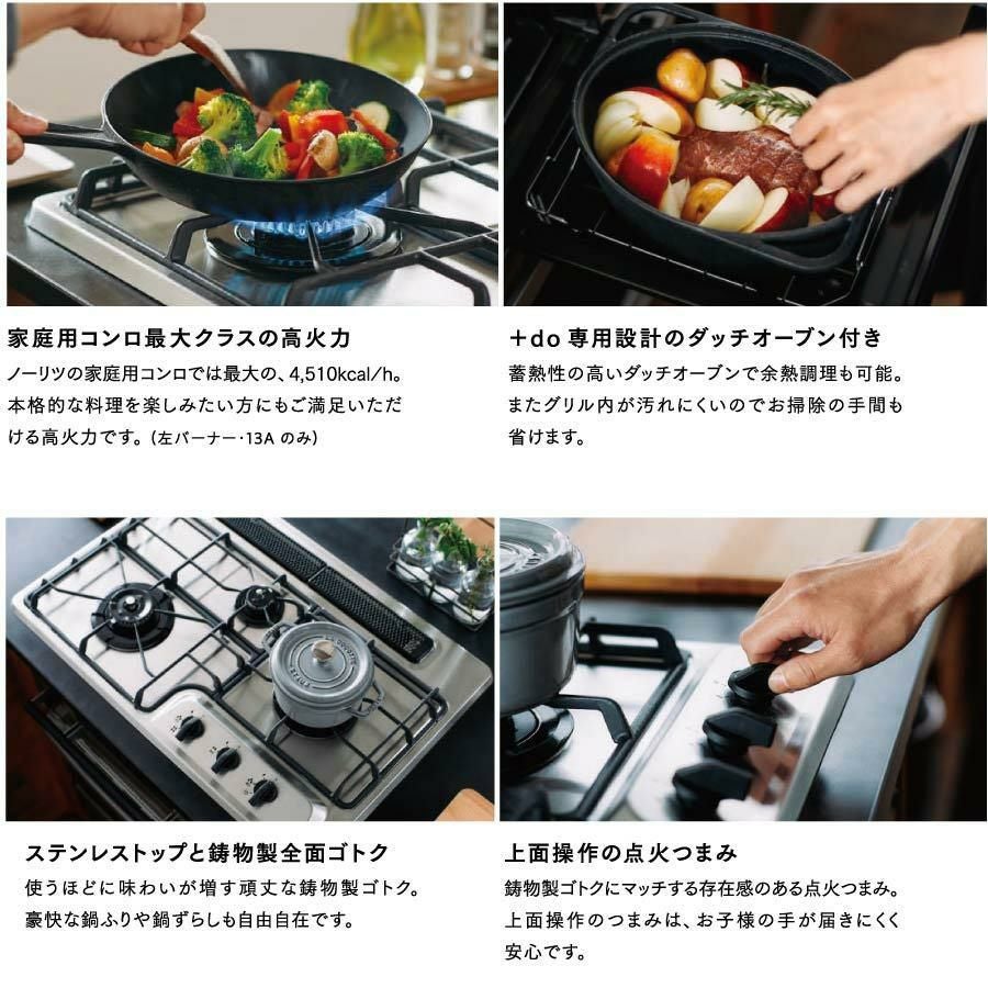 他の画像を見る 人生を楽しむ人のためのキッチンツール「+do」 ノーリツ ビルトインコンロ N3WS9KJTKSTED 75cm幅 +do プラスドゥ 3口ガスコンロ 定価 ¥ 316,250 のところ 当店特別価格 ¥ 164,450 税込 詳細を見る
