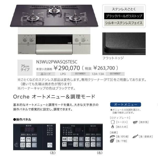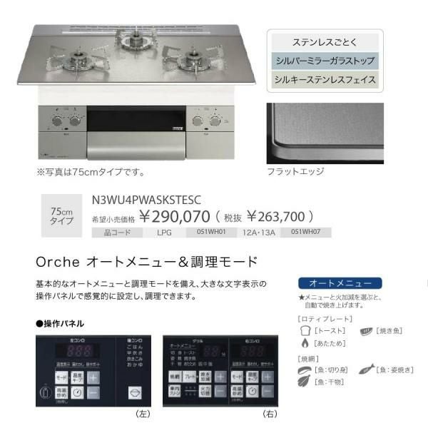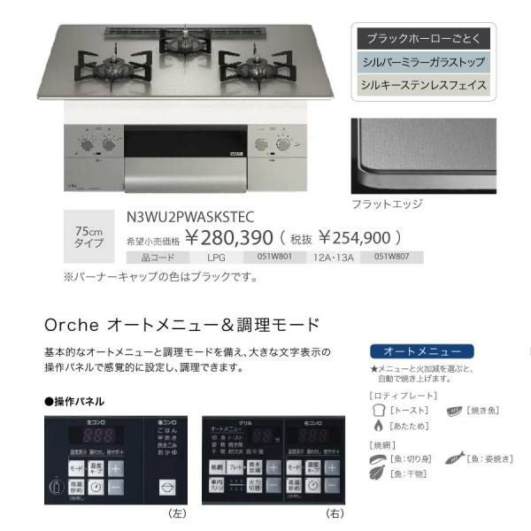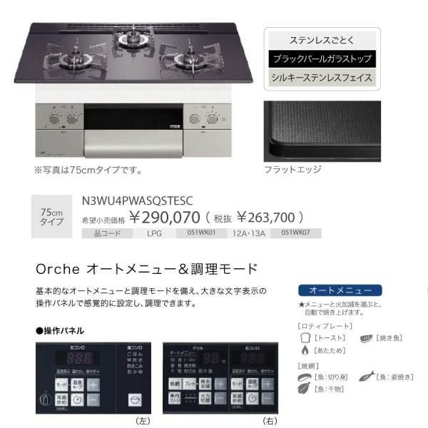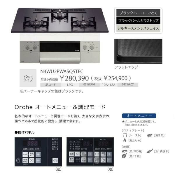 他の画像を見る ノーリツ ビルトインコンロ N3WU4PWASQSTEC Orche オルシェ 75cm幅 ガラストップ:ブラックパール 3口ガスコンロ *ロティプレート同梱 定価 ¥ 280,390 のところ 当店特別価格 ¥ 111,900 税込 詳細を見る