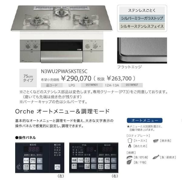 他の画像を見る ノーリツ ビルトインコンロ N3WU2PWASQSTEC Orche オルシェ 75cm幅 ガラストップ:ブラックパール 3口ガスコンロ *ロティプレート同梱 *オーブン接続不可 定価 ¥ 280,390 のところ 当店特別価格 ¥ 110,400 税込 詳細を見る