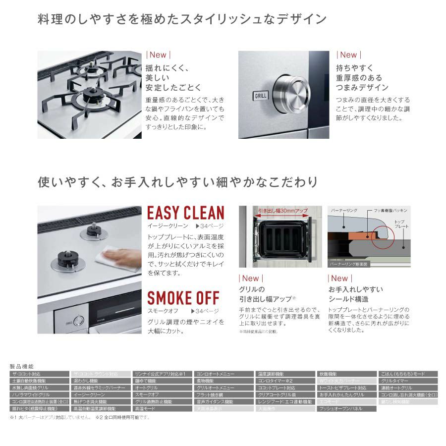 他の画像を見る 豊富な調理機能で、食卓を華やかに ノーリツ ビルトインコンロ N3S22PWAAFBAEC PROGRE プログレ プラチナブラック 60cm幅 ラックリーナ 定価 ¥ 393,800 のところ 当店特別価格 ¥ 200,750 税込 カートに入れる