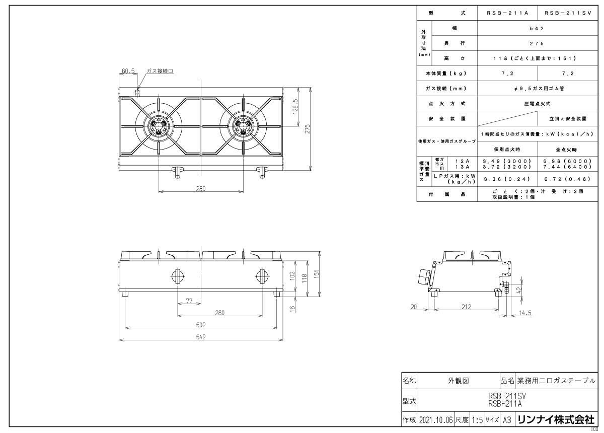 他の画像を見る 設置場所を選ばないコンパクト設計 リンナイ 業務用ガスコンロ RSB-S206N 内炎バーナータイプ 定価 ¥ 70,180 のところ 当店特別価格 ¥ 45,595 税込 カートに入れる