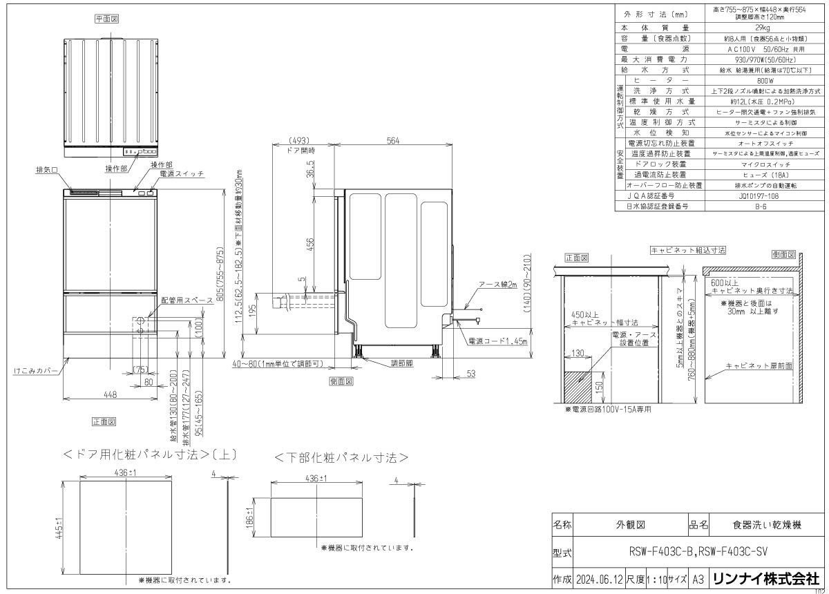 他の画像を見る 収納も取り出しも簡単、大容量がうれしい リンナイ 食器洗い乾燥機 RSW-F403C-B 付属:化粧パネルブラック(ツヤ消) 定価 ¥ 238,700 のところ 当店特別価格 ¥ 119,350 税込 詳細を見る