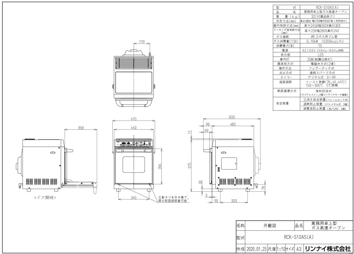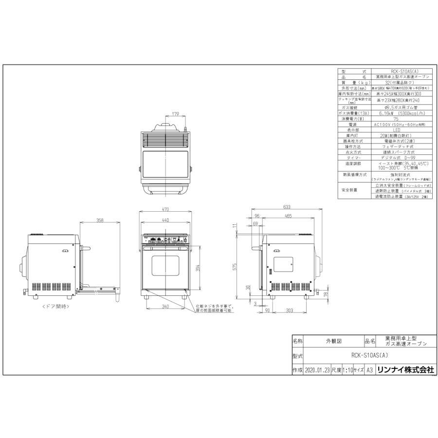 リンナイ 業務用 卓上ガスオーブン(コンベック)RCK-10AS