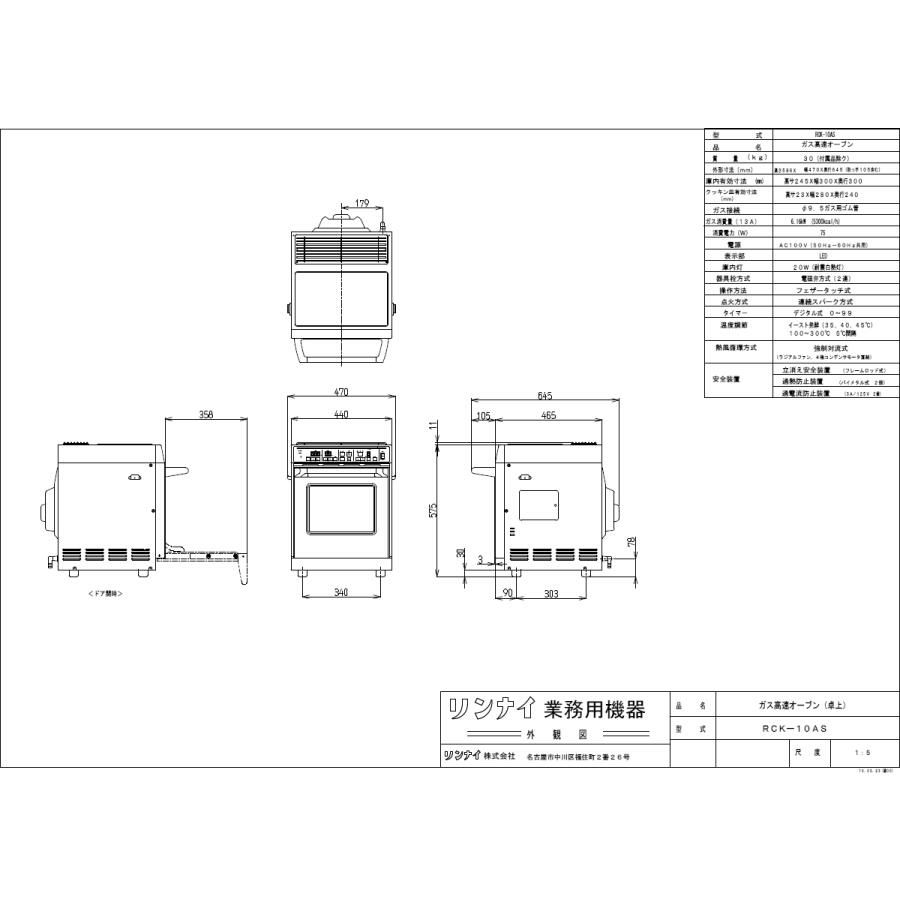 リンナイ 業務用 卓上ガスオーブン(コンベック) RCK-S10AS(A) 涼厨