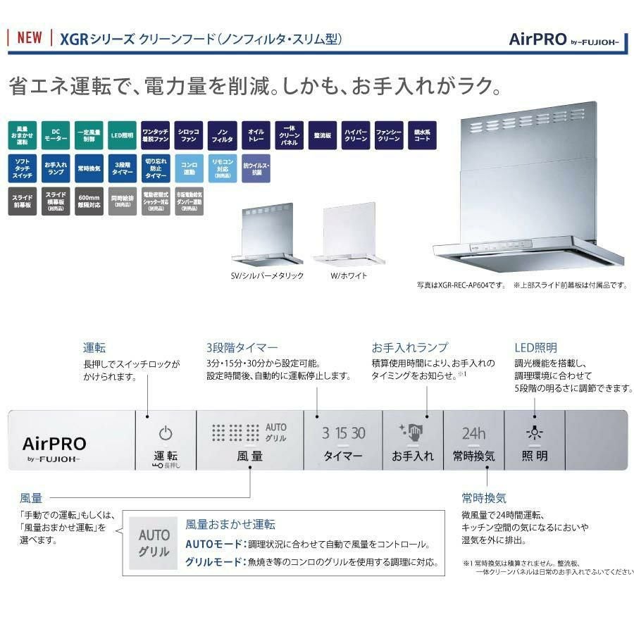 他の画像を見る リンナイ レンジフード XGR-REC-AP604SV AirPRO ノンフィルタ・スリム型 幅60cm シルバーメタリック [エアプロ] 定価 ¥ 216,040 のところ 当店特別価格 ¥ 120,920 税込 カートに入れる