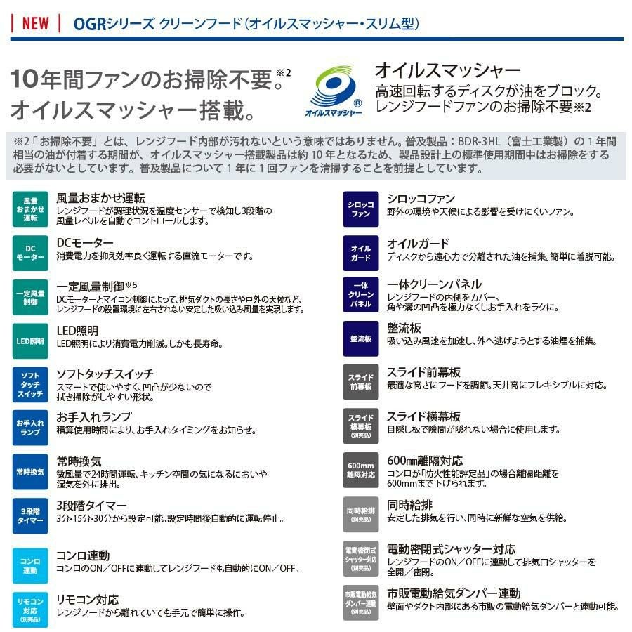 他の画像を見る リンナイ レンジフード OGR-REC-AP902R/LSV Air Pro クリーンフード(オイルスマッシャー・スリム型) 90cm幅 定価 ¥ 283,360 のところ 当店特別価格 ¥ 159,620 税込 詳細を見る