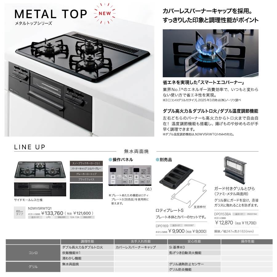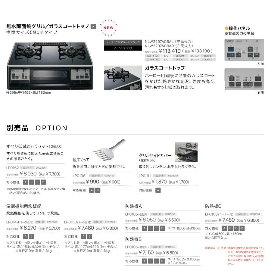 他の画像を見る ノーリツ ガステーブル NLW2297ACBA ガラスコートトップ 無水両面焼グリル 標準幅59cm 定価 ¥ 113,410 のところ 当店特別価格 ¥ 68,046 税込 カートに入れる